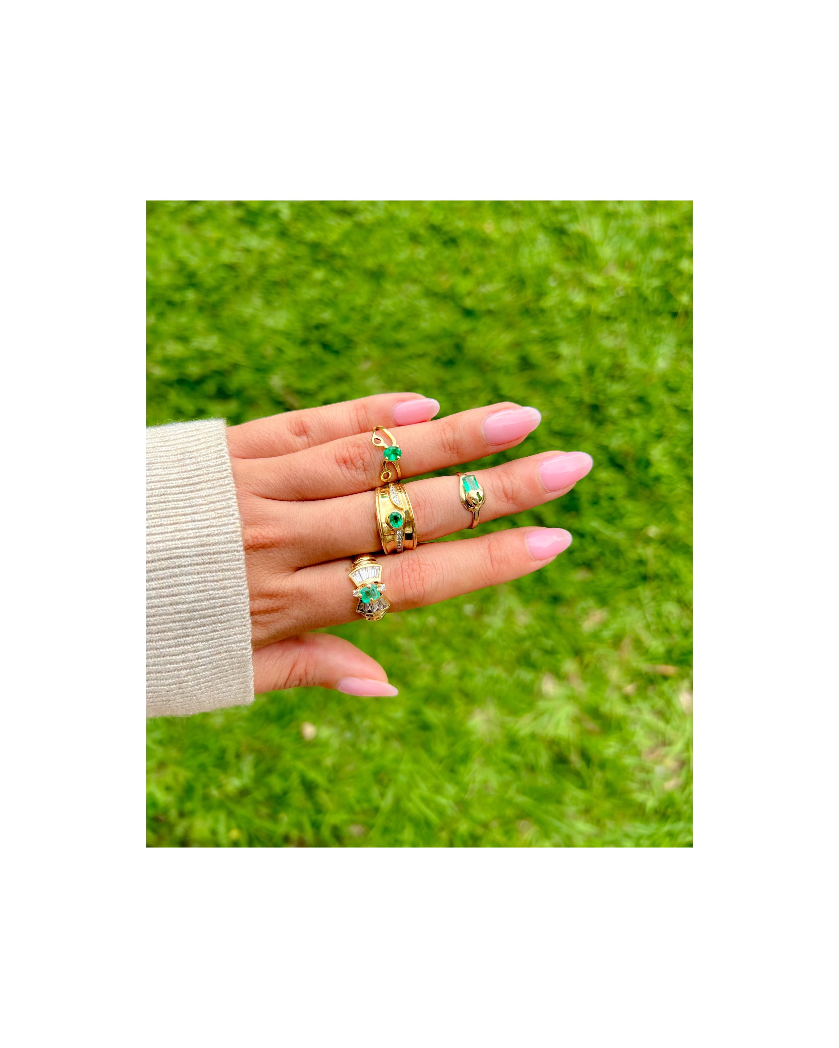Nuestro trabajo nace de un profundo deseo por contar historias a través de las joyas — en especial, la historia de Colombia, país donde crecimos y cuya riqueza cultural y natural nos inspira cada día. Por eso, nos especializamos en el trabajo con esmeraldas, una piedra emblemática de esta tierra, que buscamos integrar en piezas que conecten con quienes las usan.